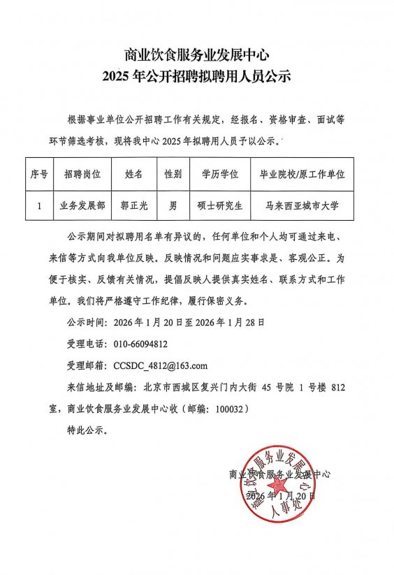 商业饮食服务业发展中心2025年实习生招聘公告...